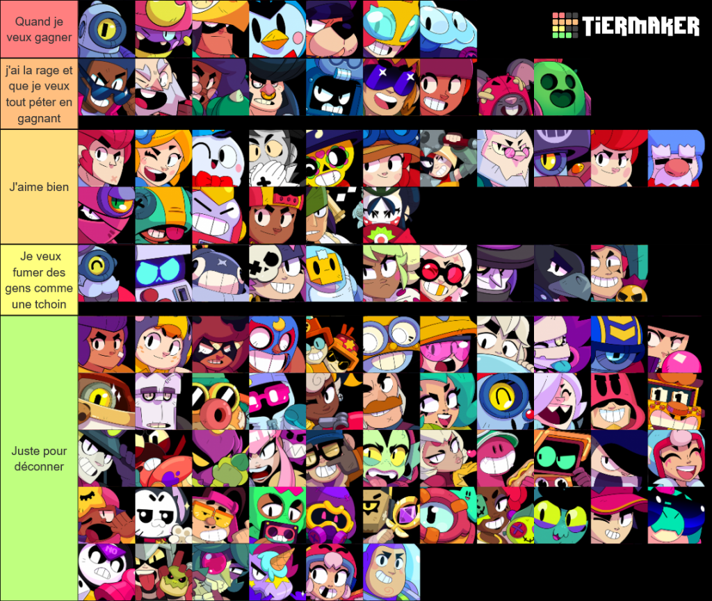 C’est ceux que j’aime jouer, pas la peine de lever ton doigt comme un premier de classe pour me dire qu’un pro que t’arrives pas à imiter ou ton YouTuber préféré a fait une autre tierlist !